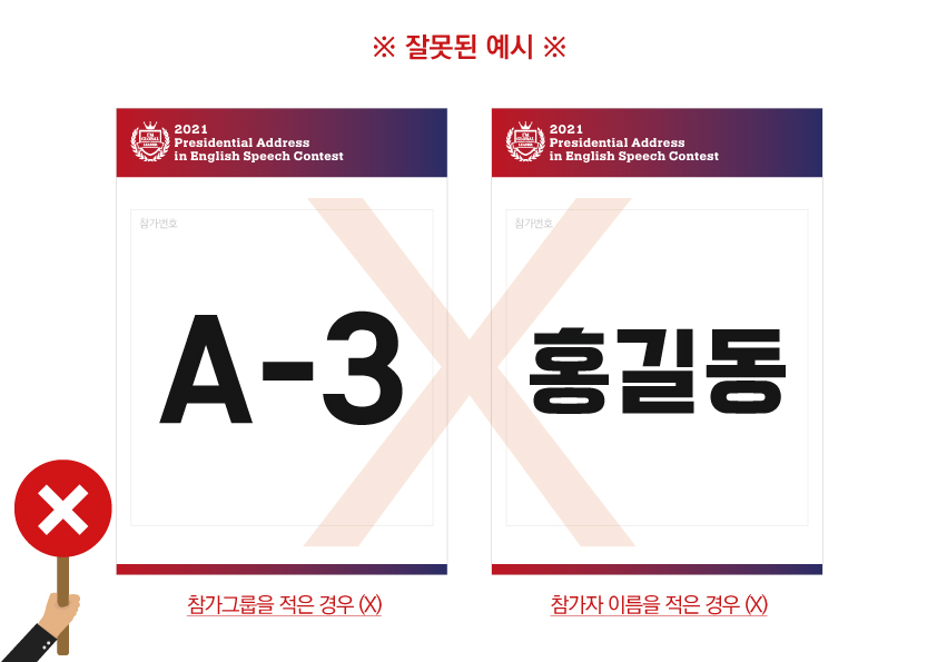 대회당일 발표시 참가번호가 화면에 잘 보이도록 달아주세요~"